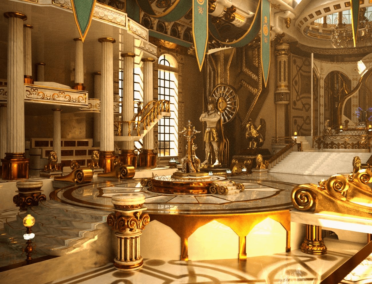 Step into a lavish Greek‑inspired fantasy world with the Zeus Throne Room set, a 3D environment brimming with epic mythological flair reminiscent of the Odyssey and the legendary Statue of Zeus World Wonder. The scene includes 10 detailed props and comes fully equipped with 248 high-resolution maps — Texture, Bump, Metallic, Normal, Roughness, Emissive, and Transparency — in 4096×4096 and 2048×2048 formats, ready for stunning renders. Its grand throne, sculpted statues, and ornate architectural elements make it perfect for fantasy, mythology, or cinematic visual storytelling in Daz Studio.